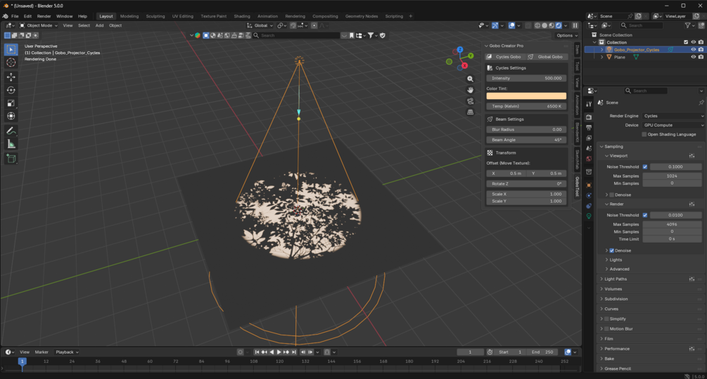 - Cycles Gobo: A lightning-fast, node-based projector that lives directly inside the light data. Optimized for Cycles, it offers incredible performance and a clean out-of-the-box setup.